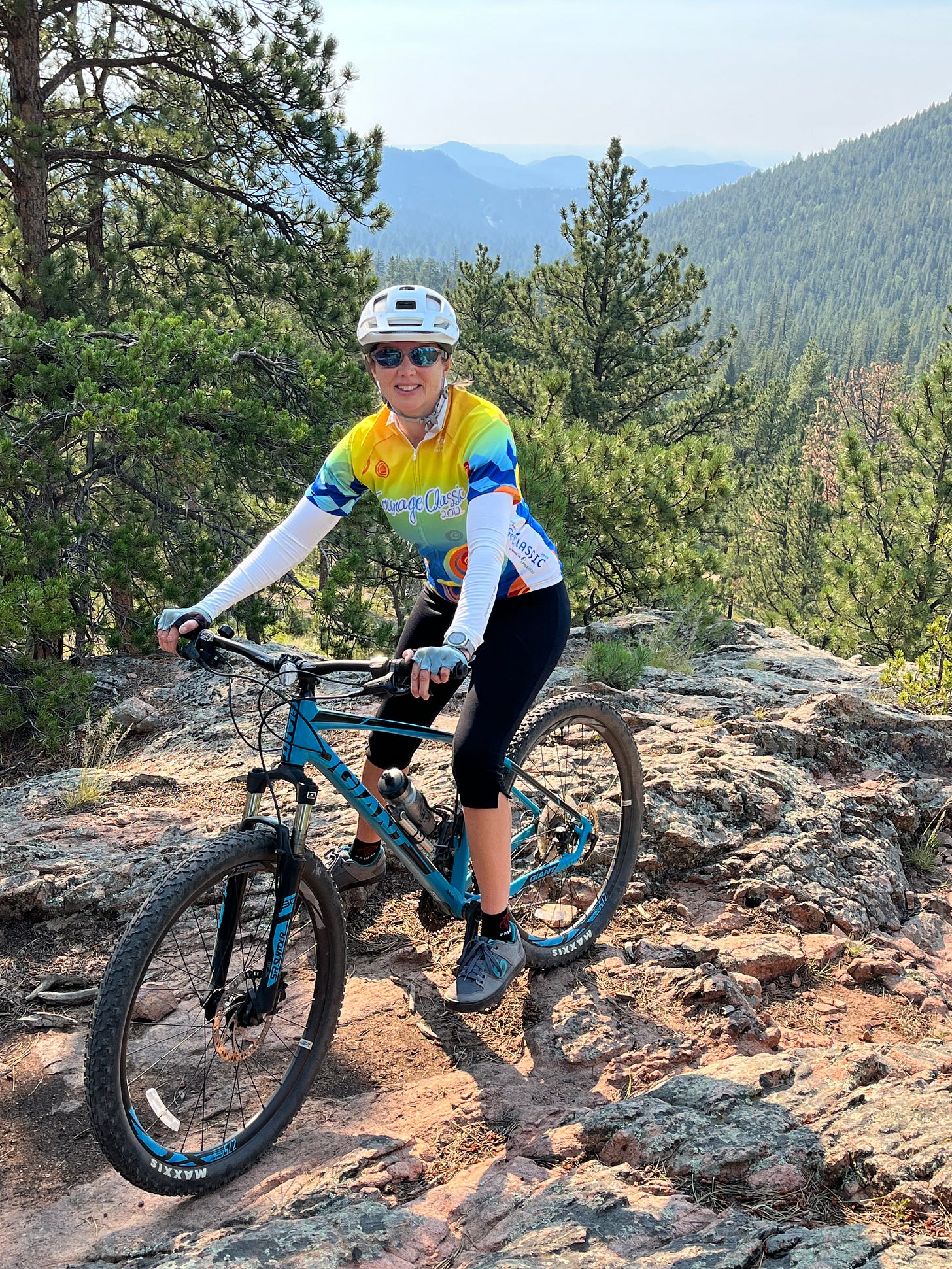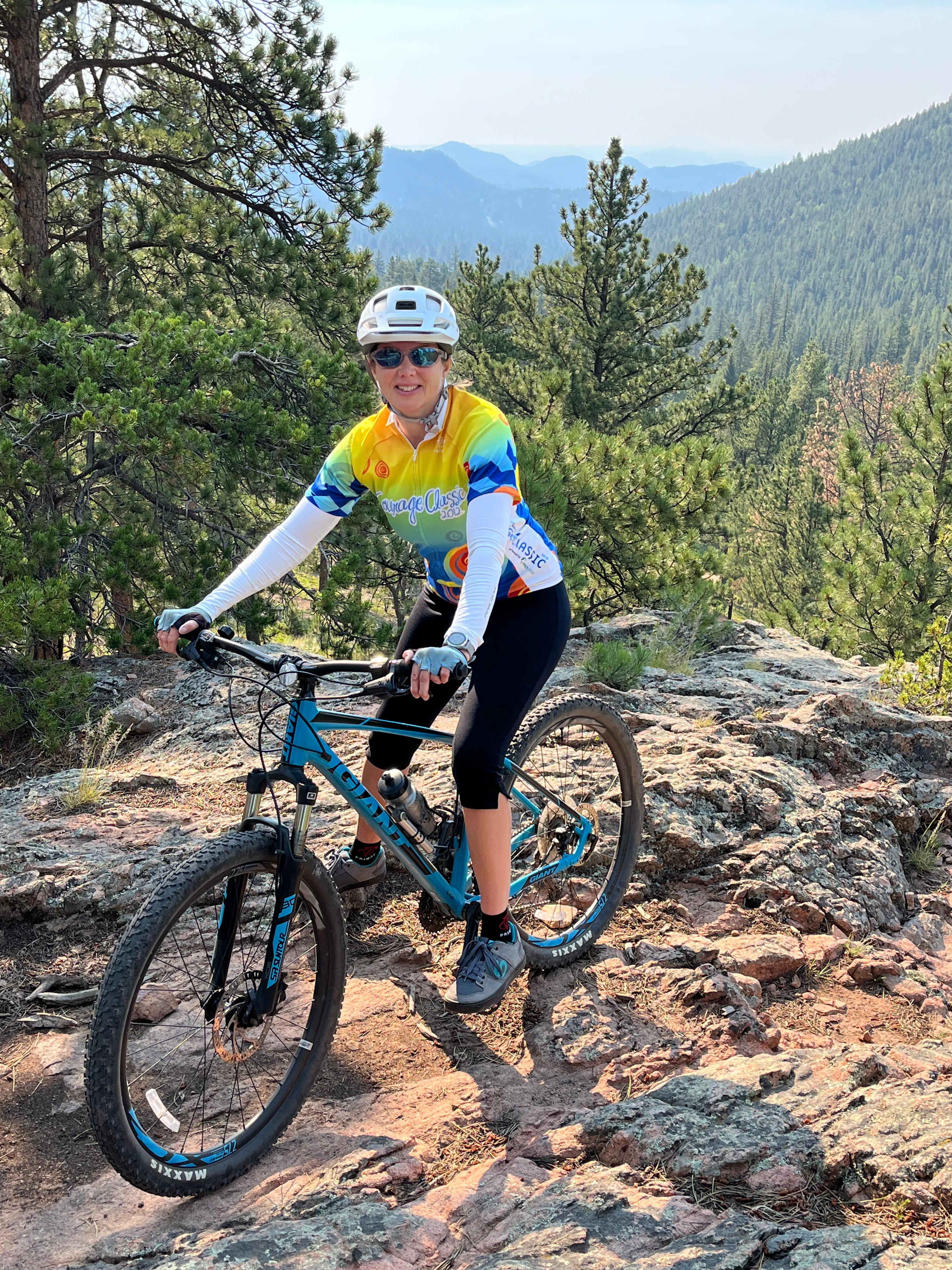 I bought a new mountain bike—still a hardtail with 27.5-inch tires because that’s what I was used to riding, but with upgraded brakes and better front shocks. I started riding the trails in Evergreen, and tried one in Buffalo Creek with my husband that was over our heads for just getting back into single-track.